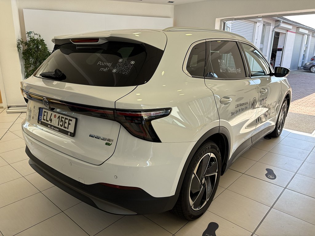 Asistent udržení v jízdním pruhu (LKA) s varováním před opuštěním pruhu systém (LDWS) a nouzové udržení pruhu (ELK), Systém varování před opuštěním jízdního pruhu (LDW), Inteligentní omezovač rychlosti (SAS), Asistent pro jízdu v dopravní koloně (TJA), Automatická dálková světla (IHC), Upozornění na vozy přijíždějící z boku při couvání (RCTA), Rádio AM/FM/DAB+, Online služby (další služby zahrnují Počasí, Živý provoz, Youtube, Spotify, TikTok), Bezdrátové připojení k Apple CarPlay™ a Android Auto™, Plánovač cesty EV, 12,8" HD dotyková obrazovka infotainmentu, Digitální přístrojový panel s 10,25" barevným displejem, 4 USB porty (3 přední - 2 typu C + 1 typu A na zpětném zrcátku, 1 zadní - typu C), Příjem digitálního rozhlasového vysílání (DAB), Systém sledování pozornosti řidiče (DMS), Přední středový airbag, Autohold s asistencí při rozjezdu do kopce, Systém aktivního řízení stability (ESP), Nouzový brzdový asistent (EBA), Alarm - elektronické zabezpečení, Akustické upozornění na nezapnutý bezpečnostní pás řidiče, Akustické upozornění na nezapnutý bezpečnostní pás spolujezdce, Varování před přijíždějícími vozidly při otevírání dveří (DOW), Systém ISOFIX na zadních sedadlech (2x), Čelní airbagy řidiče a spolujezdce (x2), deaktivace airbagu spolujezdce, Antiblokovací brzdový systém (ABS) & ,Elektronický systém rozdělení brzdného účinku (EBD), 18" kola z lehké slitiny ve stylu Rotor s aerodynamickým krytem, Možnost míry rekuperace elektrické energie (KERS, 4 úrovně), Možnost využití vozidla jako záložního zdroje energie (V2L), LED denní světlomety, LED zadní světlomety, Automatické světlomety, Stříbrné střešní ližiny, Zatmavená zadní okna, 360° panoramatická parkovací kamera, Zadní střešní spoiler, Zadní parkovací senzory, Elektricky nastavitelná, sklopná, vyhřívaná, černá zrcátka, Aktivní systém mřížky (AGS), Bezklíčový přístup a startování pomocí tlačítka, Výškově a podélně nastavitelný volant, Sluneční clona u řidiče a spolujezdce, Bluetooth klíč pro mobilní telefony, Ruční stmívání zpětného zrcátka, Předehřev baterie před nabíjením, Kůží potažený volant, Elektricky ovládané páté dveře, Možnost vlastního nastavení jízdních režimů (5 režimů), Osvětlení pro čtení vzadu, Jednopedálové ovládání zrychlování a zpomalování vozidla, Připojení k aplikaci iSmart, Automatická klimatizace s ventilačními otvory vzadu, Dešťový senzor, Elektrické ovládání předních a zadních oken, okno řidiče s funkcí AUTO a ochranou proti přivření, Automatická klimatizace, Vyhřívaný volant, Tepelné čerpadlo, Přední vyhřívaná sedadla, Čalounění v kombinaci kůže/látka, Středová loketní opěrka vzadu, Sedadlo řidiče s manuálně nastavitelnou bederní opěrkou, Sedadlo řidiče elektricky nastavitelné v 6 směrech, Sedadlo spolujezdce manuálně nastavitelné ve 4 směrech, Opěradlo zadních sedadel dělené v poměru 60:40, Třetí zadní brzdové LED světlo, Zadní mlhové světlo, Full LED světlomety, Audiosystém s 12,8" barevným dotykovým displejem, 6 reproduktory, tuner AM/FM, možnost přehrávání MP3, hlasové ovládání (iSMART), Systém automatického nouzového brzdění (AEB), Aktivní systém pro udržení jízdního pruhu (LKA), Adaptivní tempomat (ACC) s omezovačem rychlosti, Automatické nouzové brzdění s detekcí chodců, cyklistů i motocyklů (AEB), MG Pilot nastavitelný profil, Systém sledování mrtvého úhlu (BSM), Upozornění na změnu jízdního pruhu (LCA), Upozornění na hrozící kolizi za vozidlem (RCW), Ovládání některých funkcí pomocí aplikace iSmart (klimatizace, vyhřívání sedadel, volantu, kontrola nabití baterie,…), Vestavěná satelitní navigace, Boční airbagy řidiče a spolujezdce (x2), hlavové (okenní) airbagy vpředu a vzadu (x2), Elektronický imobilizér, Sluneční clona u řidiče a spolujezdce s kosmetickým zrcátkem, Elektricky ovládaná přední a zadní okna, Vyhřívání předních sedadel
